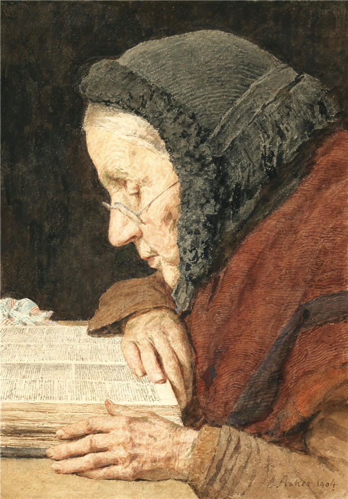 简介: 阿尔伯特·安克(Albert Anker,瑞士画家)高清作品-《读圣经的老妇人 (1904)》