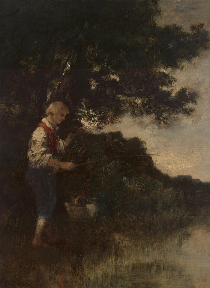 简介: 纳西斯·迪亚兹·德·拉·佩纳(Narcisse-Virgile Diaz de la Peña,法国画家)作品-《男孩钓鱼》