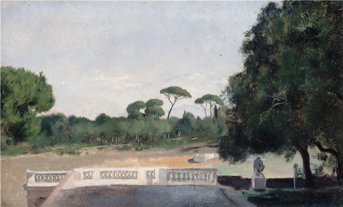 简介: 让-雅克·亨纳 (Jean-Jacques Henner,法国画家)高清油画作品-《从罗马的美第奇别墅(1859-1860)可以看到博吉斯别墅的花园》