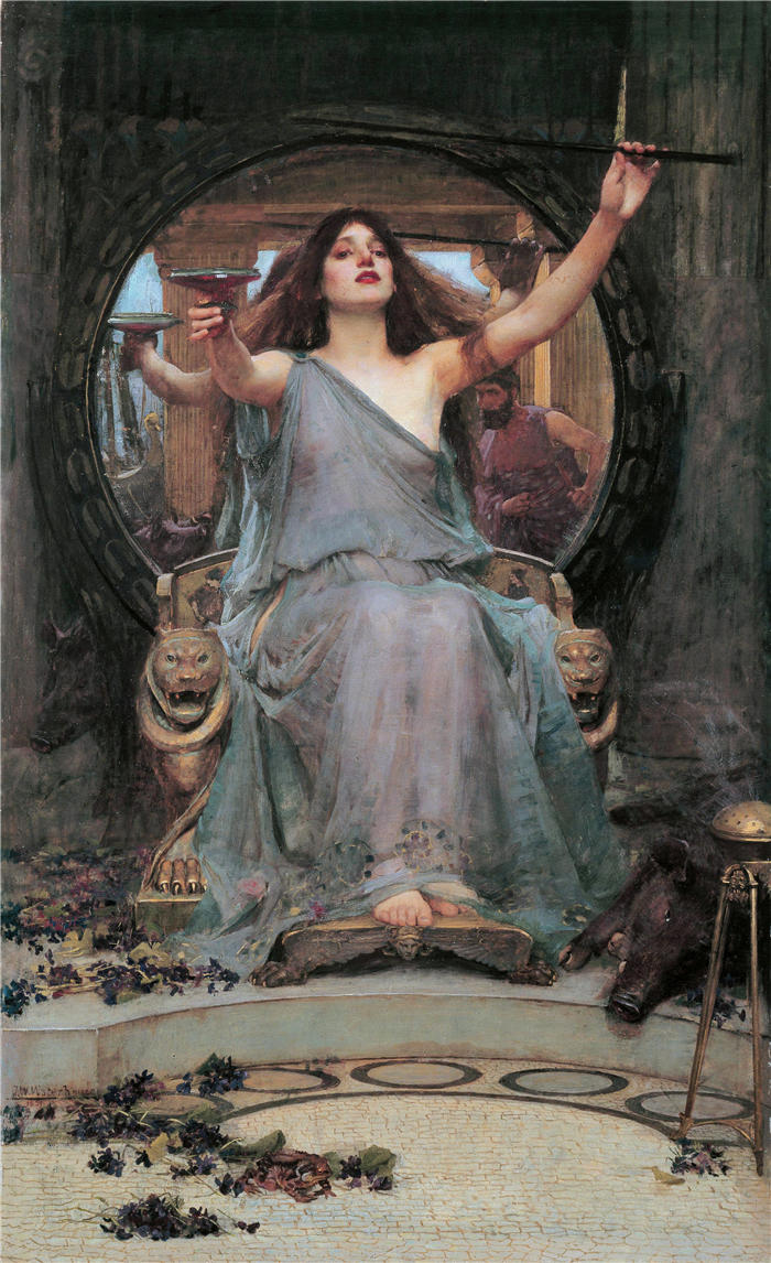 简介: 约翰·威廉姆·沃特豪斯(John William Waterhouse,英国画家) 高清作品-《Circe 将杯子献给奥德修斯 (1891)》