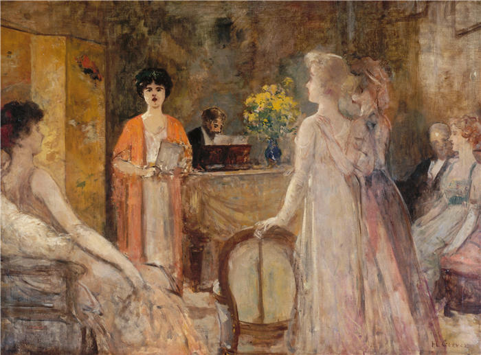 简介: 亨利·格韦克斯(Henri Gervex,法国画家)高清作品-《星期二晚上在玛德琳·莱梅尔家(1910年)》