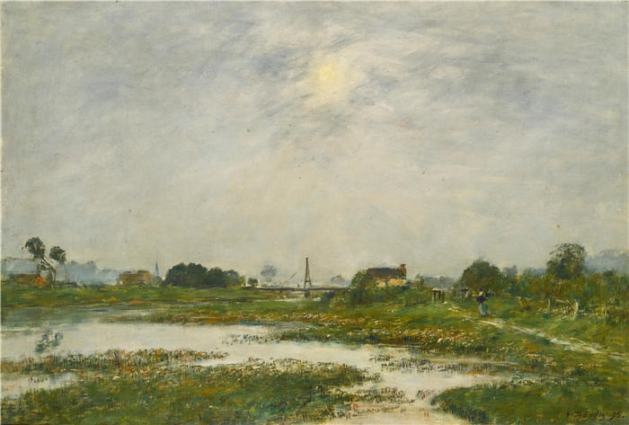 简介: 欧仁·布丁(Eugène Boudin,法国画家)高清作品-《大潮期间的图克河畔(1895年)》