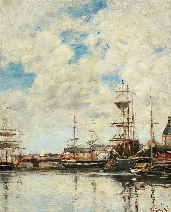 简介: 欧仁·布丁(Eugène Boudin,法国画家)高清作品-《敦刻尔克,voiliers à quai (1891)》