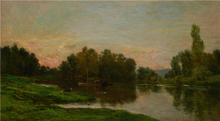 简介: 查尔斯·弗朗索瓦·杜比尼(Charles-Francois Daubigny,法国画家)高清作品-《瓦兹河 Ile de Vaux 的画家驳船(1877 年)》