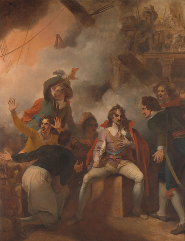 简介: 罗伯特·斯米尔克( Robert Smirke,英国画家)作品-桑威奇伯爵在索尔贝海战中拒绝弃船(1793 年)
