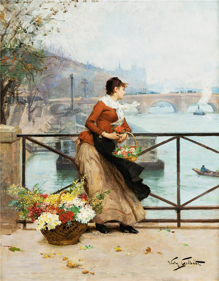 简介: 维克多·加布里埃尔·吉尔伯特(Victor Gabriel Gilbert,法国画家)高清作品-《巴黎艺术桥上的花商》