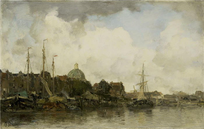 简介: 雅各布·马里斯(Jacob Maris,荷兰画家)高清作品-《带有圆顶教堂的城市景观(c. 1872 - c. 1875)》