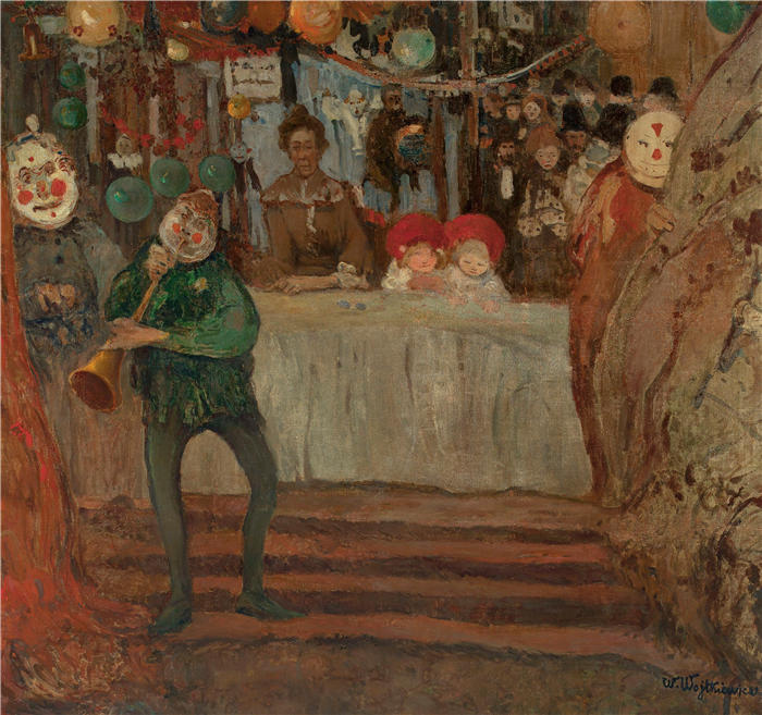简介: 维托德·沃伊特凯维(Witold Wojtkiewicz,波兰画家)作品-马戏团——小剧场前(1906 年至 1907 年)