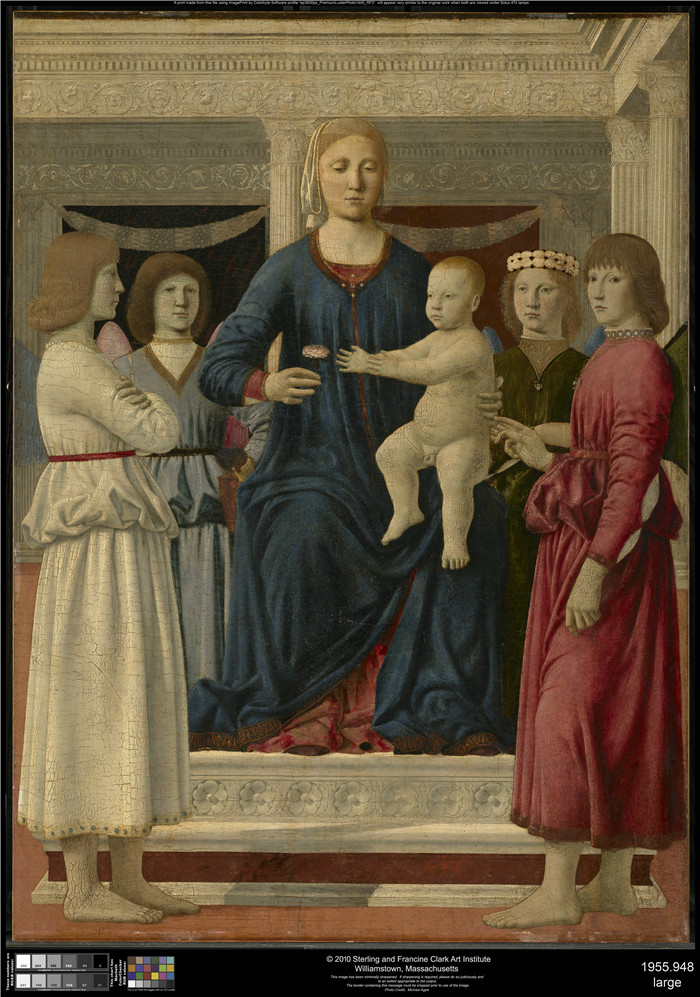简介: 皮耶罗·德拉·弗朗西斯卡(Piero della Francesca,意大利)作品-处女和孩子与四个天使登基Virgin and Child Enthroned with Four Angels