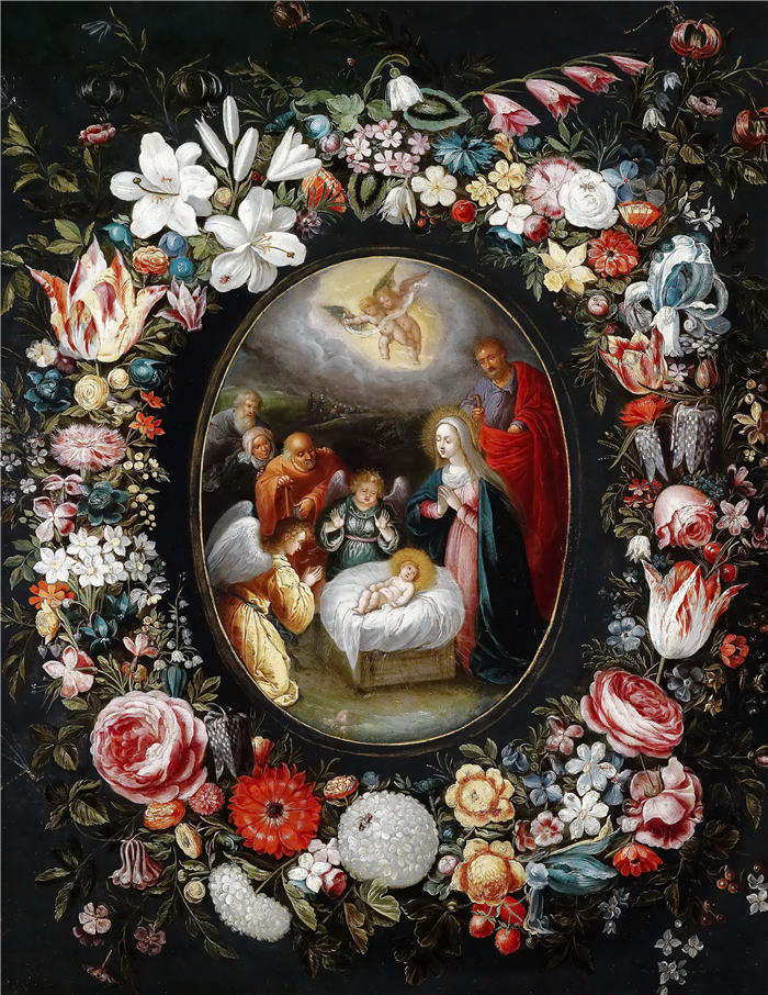 简介: (042)小彼得·勃鲁盖尔(Pieter Brueghel the Younger)超清清作品-《圣母子和花环》