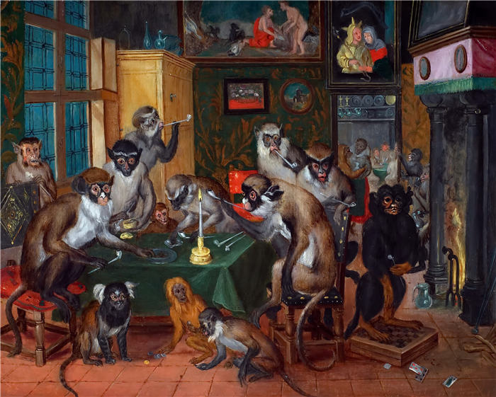 简介: (053)小彼得·勃鲁盖尔(Pieter Brueghel the Younger)超清清作品-《 猴子晚会》