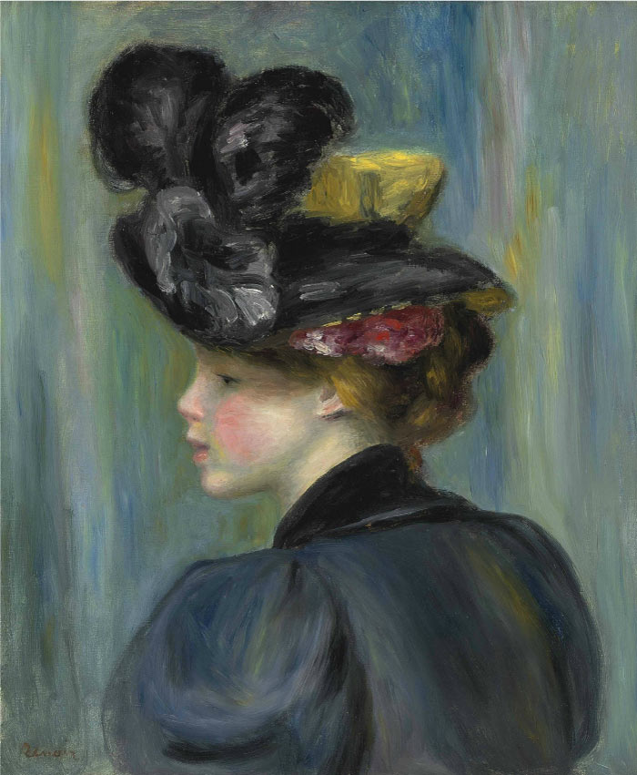 简介: (54)雷诺阿(Pierre-Auguste Renoir)作品-JEUNE FEMME AU CHAPEAU NOIR 戴黑帽子的年轻女子