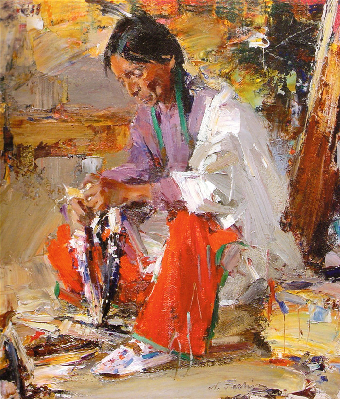简介: 尼古拉·费欣(Nicolai Fechin)高清作品-Индеец с кукурузой (1927—1933)