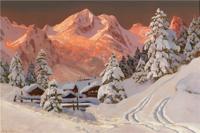 简介: 阿洛伊斯·阿内格(Alois Arnegger)高清作品-《山上的冬天》, 61 x 92 cm