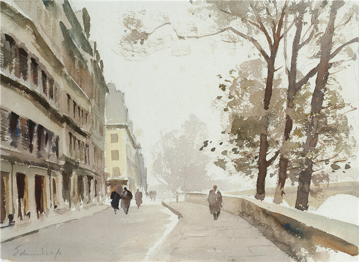 简介: 爱德华·西戈( Edward Seago)-083 11月 - Ile de la Cité, 巴黎