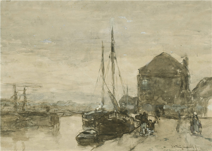 简介: 让·亨德里克·维西恩布鲁奇(jan hendrik Weissenbruch)作品-Gezicht op de Turfmarkt met de Eendjespoort in Haarlem Rijksmuseum