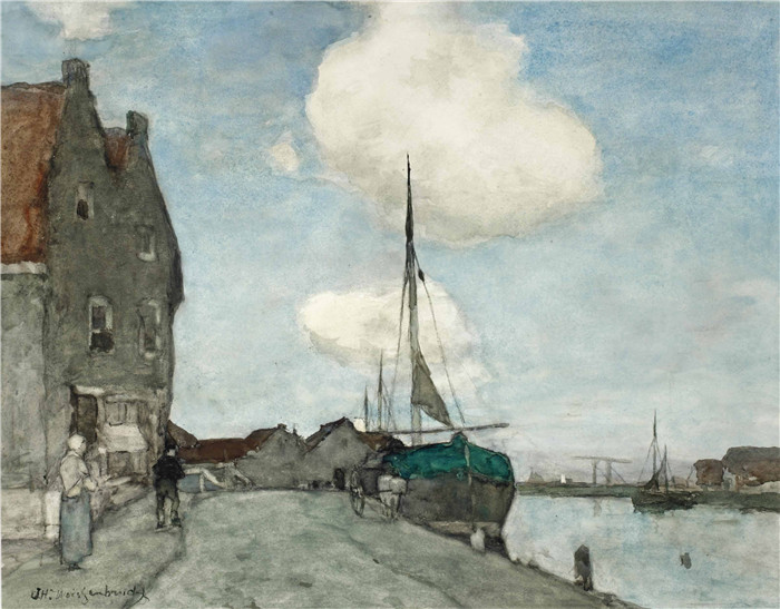 简介: 让·亨德里克·维西恩布鲁奇(jan hendrik Weissenbruch)作品-哈勒姆附近的一条水道