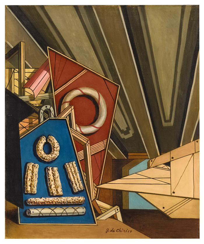 简介: 乔治·德·基里科(Giorgio de Chirico)高清作品-Interno Metafisico Con Biscotti, 1950