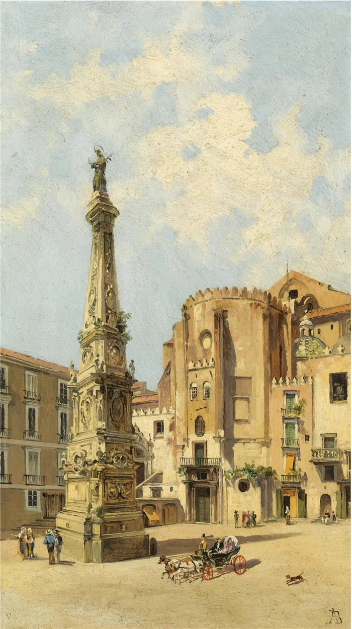 简介: 安东尼奥·布兰代斯(Antonietta Brandeis)油画-那不勒斯圣多梅尼科马焦雷广场上的一辆马车