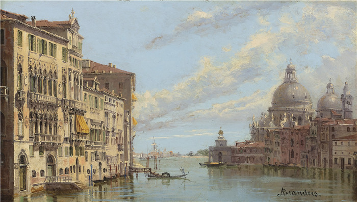 简介: 安东尼奥·布兰代斯(Antonietta Brandeis)油画-威尼斯和格拉纳达大运河的入口
