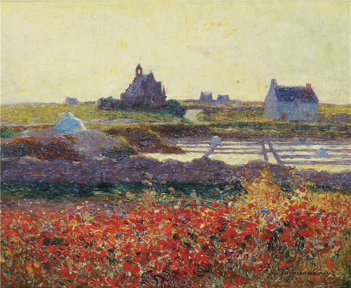 简介: 费迪南德·洛恩·杜·普伊高多(Ferdinand Loyen Du Puigaudeau)作品-附近的盐沼 Salt-Marsh near Croisic