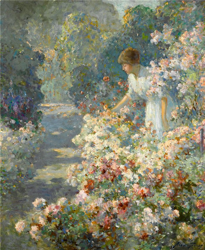 简介: 阿博特·富勒·格拉夫(Abbott Fuller Graves)油画-花园里的早晨