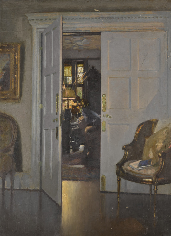 简介: 帕特里克·威廉·亚当(Patrick William Adam)作品下载-带敞开门和椅子的内部