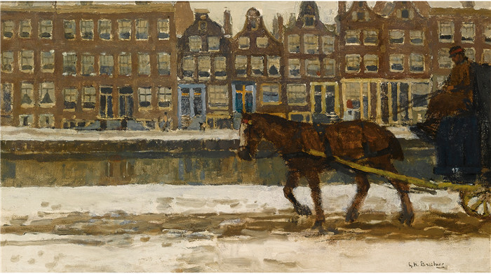 简介: 乔治·亨德里克·布莱特纳(George Hendrik Breitner)作品-被雪覆盖的运河上的马车