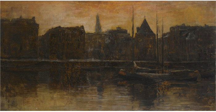 简介: 乔治·亨德里克·布莱特纳(George Hendrik Breitner)作品-从阿姆斯特丹施赖尔斯托伦看亨德里卡德亲王