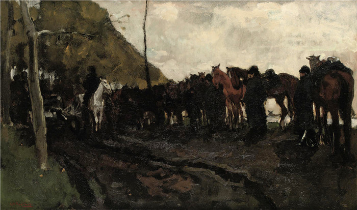 简介: 乔治·亨德里克·布莱特纳(George Hendrik Breitner)作品-鲁滕德骑兵在山毛榉上休息