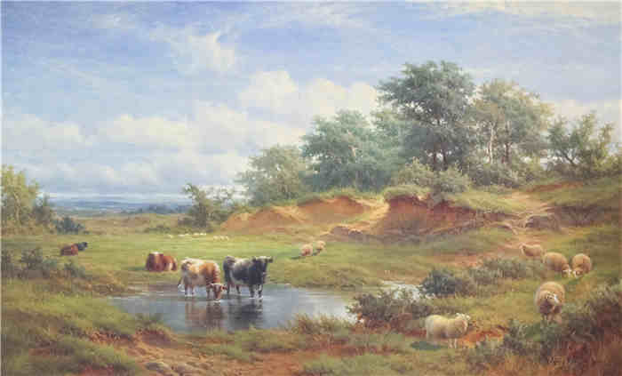 简介: 沃尔特·J·沃森 (Walter J Watson)高清油画-在兰开夏郡Mytton和兰开夏州Clitheroe附近的里布尔