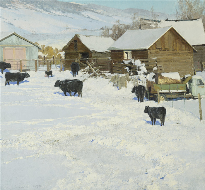 简介: T·艾伦·劳森(T. Allen Lawson)高清作品-牛,冬季The Salt Lick_66x71cm