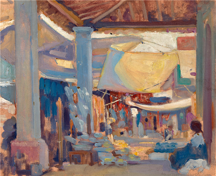 简介: 阿尔森•斯金纳•克拉克 (Alson Skinner Clark)高清作品-墨西哥伊瓜拉市场 Market place in Iguala, Mexico, 1931