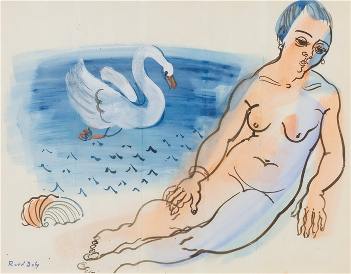 简介: 拉乌尔·杜菲(Raoul Dufy)高清作品-莱达和天鹅Léda Et Le Cygne, 1926