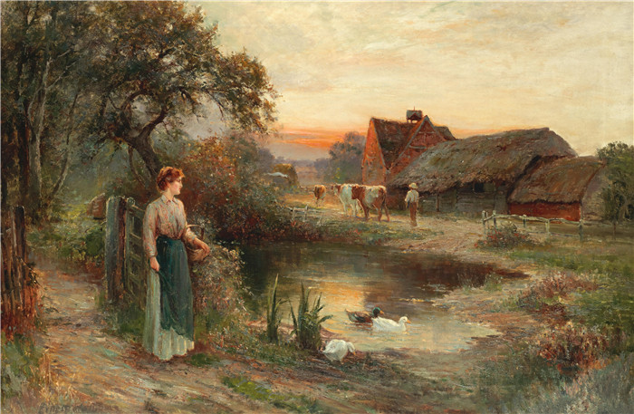 简介: 欧内斯特·沃尔伯恩(Ernest Walbourn)高清作品-农场的夜晚 61 x 92cm