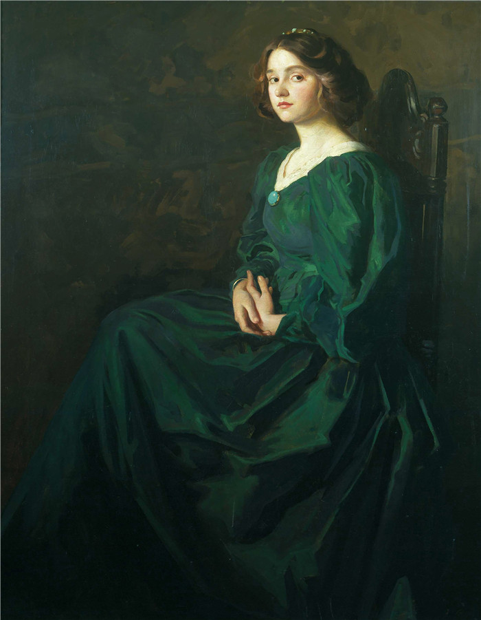 简介: 托马斯·埃德温·莫斯汀(Thomas Edwin Mostyn)作品-绿色长袍the-green-gown