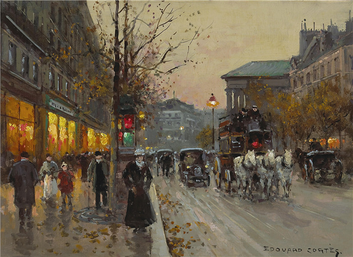 简介: 科尔特斯 (edouard leon cortes)作品-La Madeleine大道Бульвар ла Мадлен (33 x 45.6 см) (масло, холст) (Частная коллекция)
