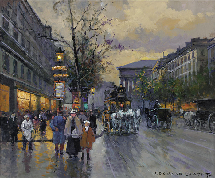 简介: 科尔特斯 (edouard leon cortes)作品-La Madeleine大道Бульвар ла Мадлен (46 х 55.5 см) (масло, холст) (Частная коллекция)