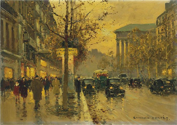 简介: 科尔特斯 (edouard leon cortes)作品-La Madeleine大道晚间Бульвар ла Мадлен вечером (33.1 x 45.8 см) (масло, холст) (Частная коллекция)