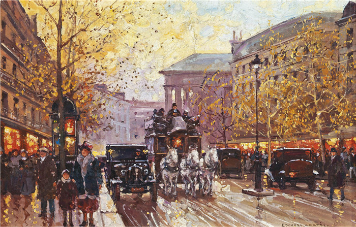 简介: 科尔特斯 (edouard leon cortes)作品-La Madeleine前喧闹的街道Шумная улица перед ла Мадлен (40.7 x 61.5 см) (масло, холст) (Частная коллекция)