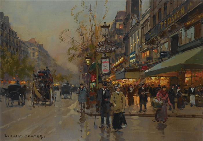 简介: 科尔特斯 (edouard leon cortes)作品-巴黎大道Парижский бульвар (33.5 х 47 см) (масло, холст) (Частная коллекция)