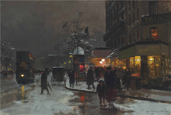 简介: 科尔特斯 (edouard leon cortes)作品-巴黎共和广场附近的雪la neige pres de la place de la republique paris