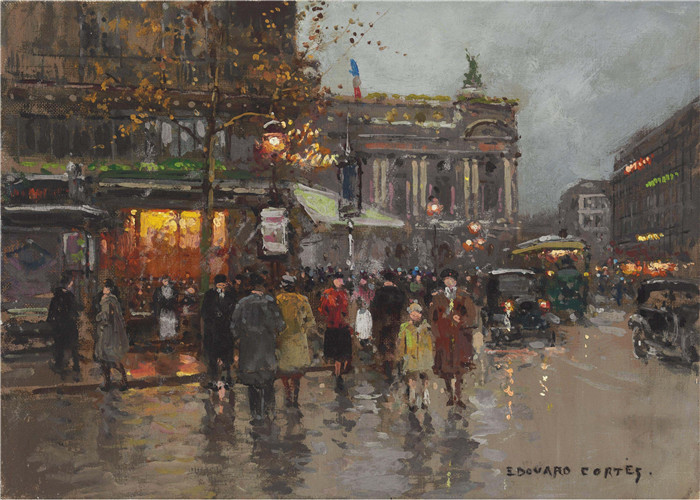 简介: 科尔特斯 (edouard leon cortes)作品-巴黎咖啡馆Кафе Де ла Пэ (33 x 46.3 см) (масло, холст) (Частная коллекция)
