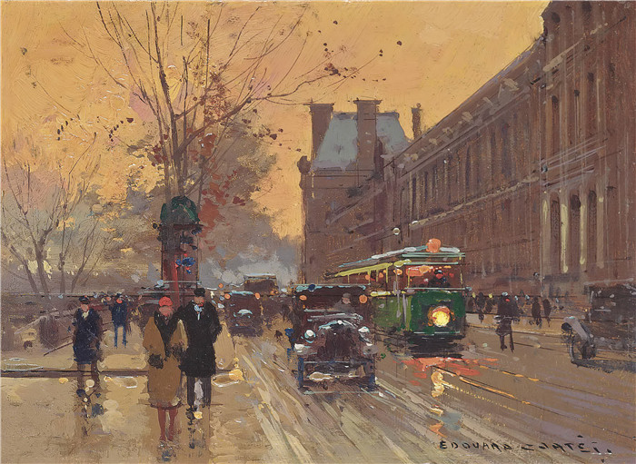 简介: 科尔特斯 (edouard leon cortes)作品-巴黎卢浮宫码头quai du louvre paris
