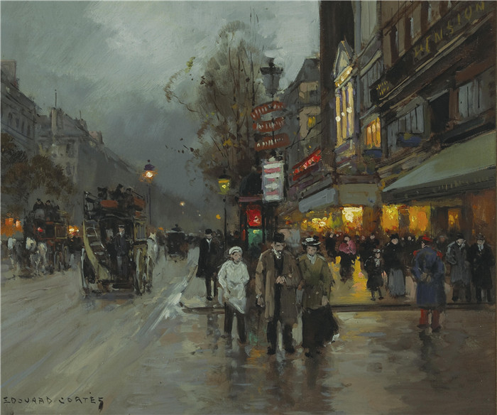 简介: 科尔特斯 (edouard leon cortes)作品-大林荫大道Большие бульвары, театр Варьете (45.7 x 54.6 см) (масло, холст) (Частная коллекция)