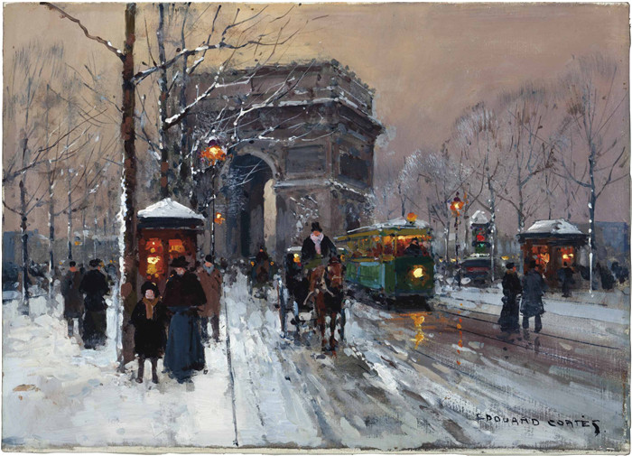 简介: 科尔特斯 (edouard leon cortes)作品-冬季的Letoile广场place de letoile en hiver