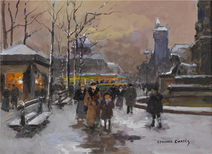 简介: 科尔特斯 (edouard leon cortes)作品-冬季航天飞机广场Площадь Шатле зимой (33 x 45.8 см) (масло, холст) (Частная коллекция)