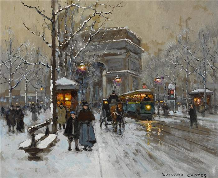 简介: 科尔特斯 (edouard leon cortes)作品-冬季凯旋门Триумфальная арка зимой (45.7 x 55.3 см) (масло, холст) (Частная коллекция)