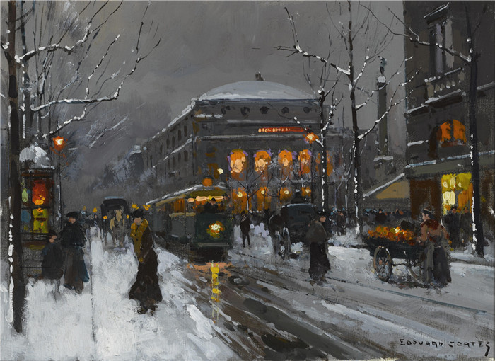 简介: 科尔特斯 (edouard leon cortes)作品-冬季沙特尔剧院Театр Шатле зимой (33 x 45.7 см) (масло, холст) (Частная коллекция)