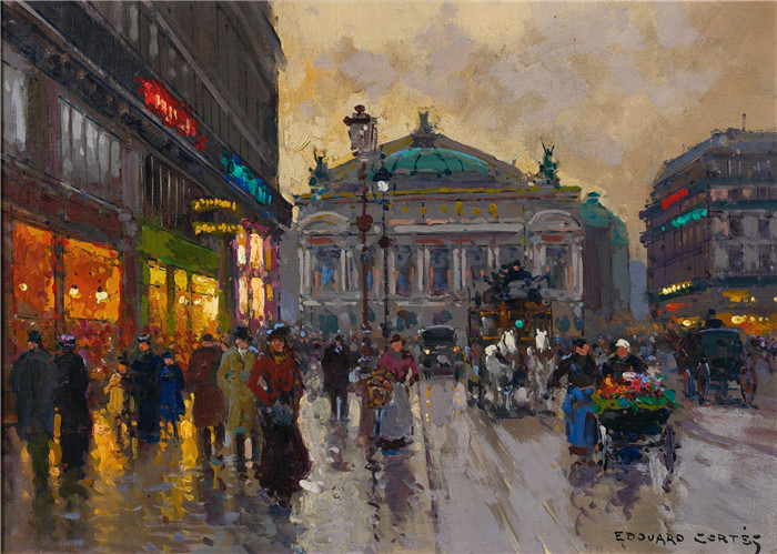 简介: 科尔特斯 (edouard leon cortes)作品-歌剧大街AVENUE DE L’OPERA
